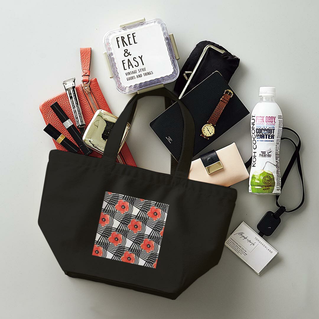 デザインランチバッグ キャンバス デイパック バッグ レディースバッグ トートバッグ ナチュラル 黒 black 012217 花柄 赤 黒