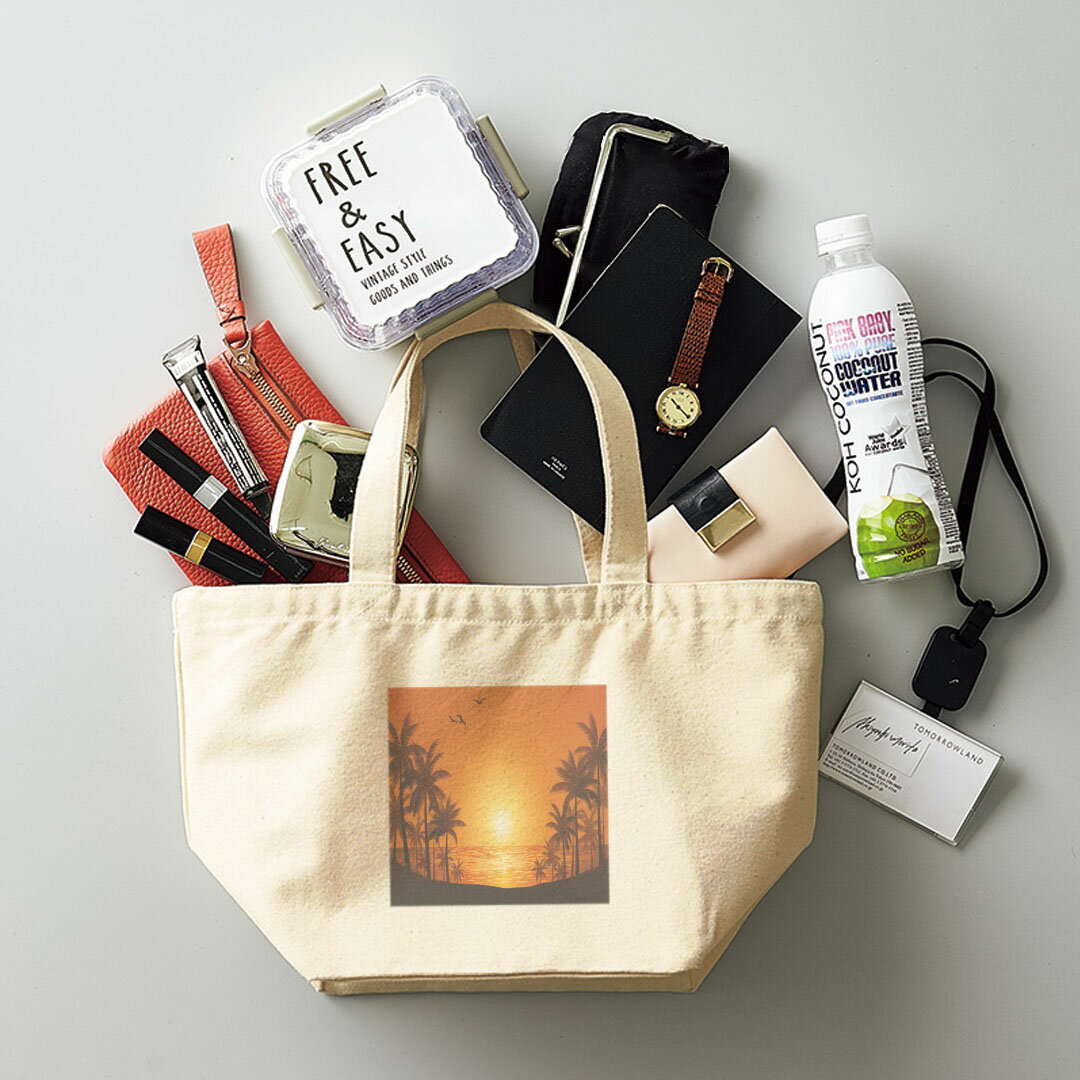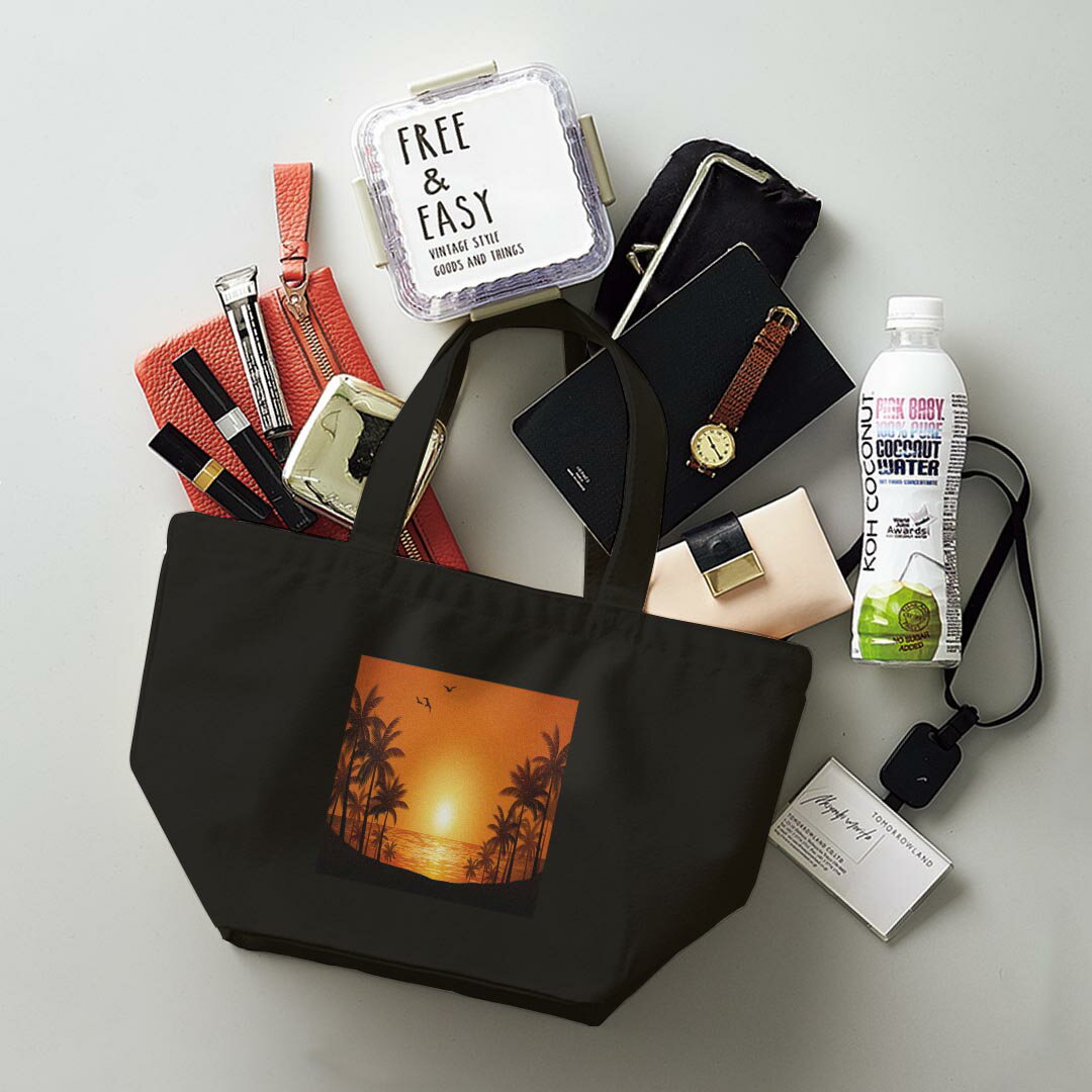 デザインランチバッグ キャンバス デイパック バッグ レディースバッグ トートバッグ ナチュラル 黒 black 003555 海 イラスト 夕日