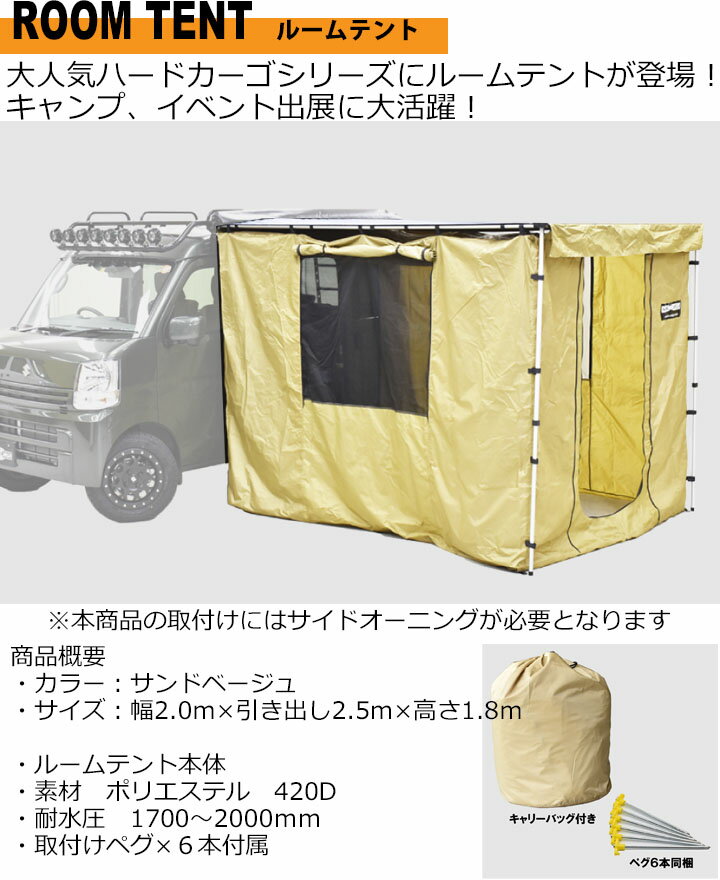 【レビューでステッカープレゼント】【ハードカーゴ ルームテント(バン専用)】(サイドオーニング HC-108/HC-155用) 軽ハコ用 軽バン用 ルーフキャリア サイドオーニング専用オプション HARD CARGO HC-129