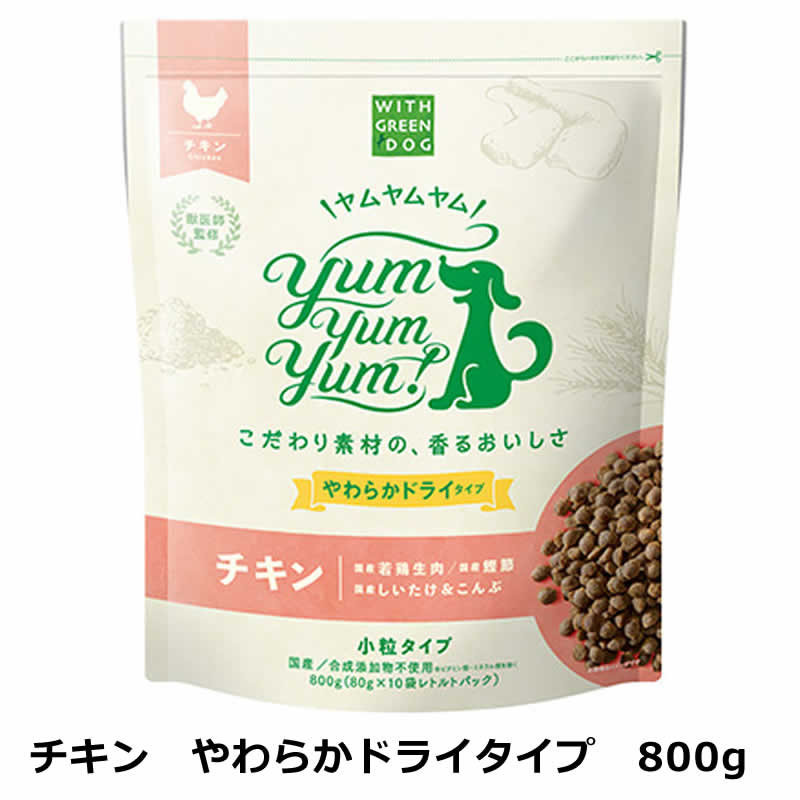 ウィズ グリーンドッグ WITH GREEN DOG ヤムヤムヤム Yum Yum Yum! チキン やわらかドライタイプ 400g(80g×5)【犬用 全年齢対応 ドライフード 鶏 国産】