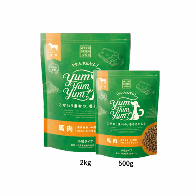 ウィズ グリーンドッグ WITH GREEN DOG ヤムヤムヤム Yum Yum Yum! シニア&ライト 馬肉 ドライタイプ 500g【犬用 ドッグフード シニア 老犬 ドライフード】