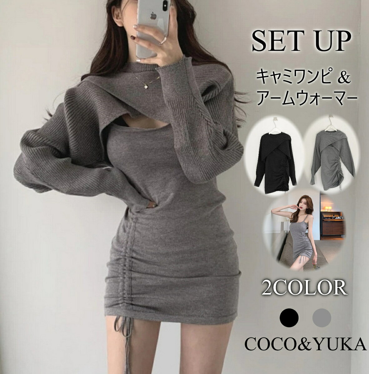 [ココアンドユカ] 胸 あき セーター セクシー 長袖 ミニ ワンピース タイト 胸元 開き ニット ボディコン ミニワンピ / COCO&YUKA / 灰 / 黒 / グレー / ブラック / M / B08K8MMLG5 詳しく見る