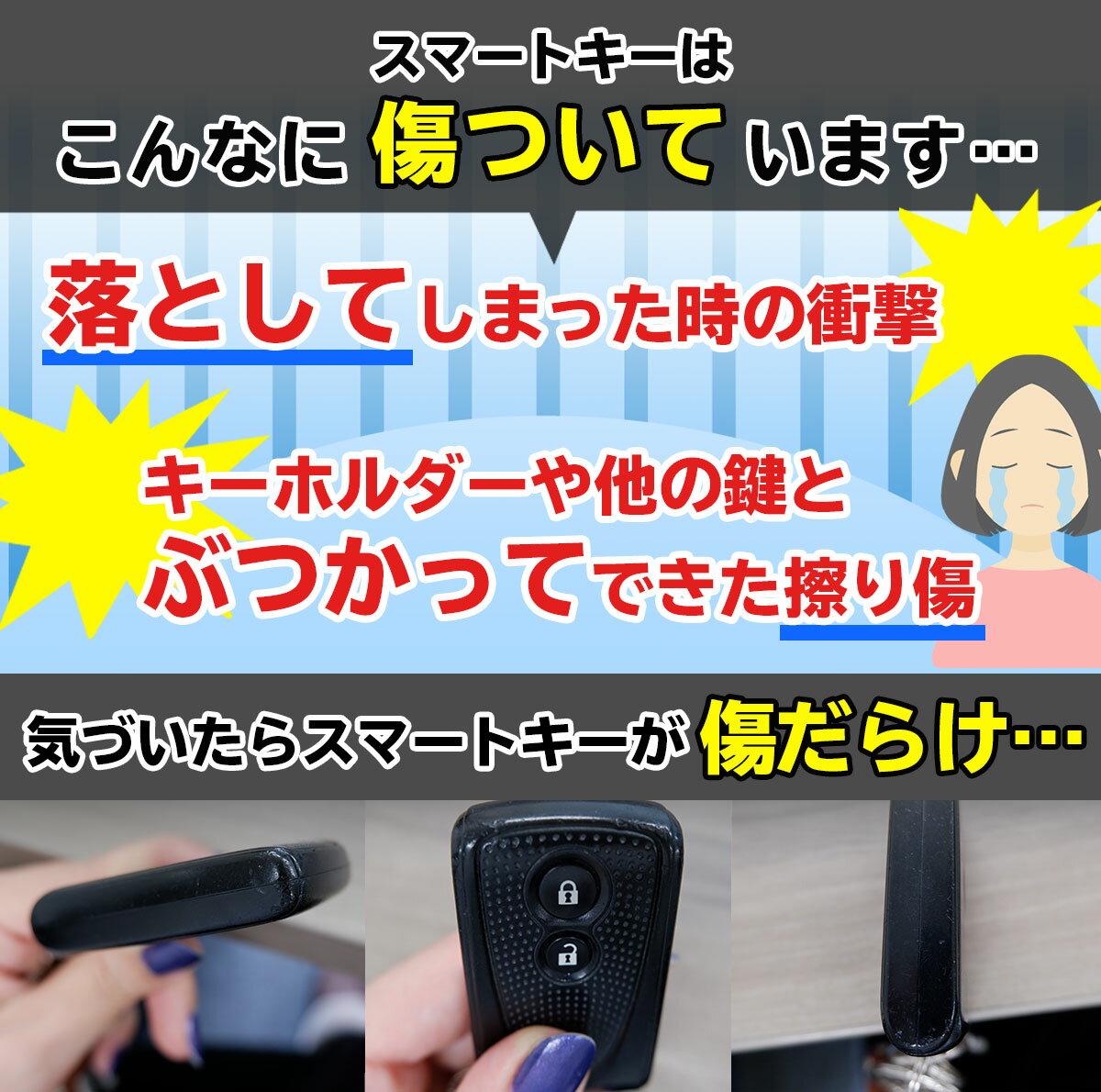 ◎スマートキーを綺麗に保ちたい方、 普段から鍵を落としやすい方 試してみる価値あり!!!◎新車購入時に、社用車に、スペアキーに!◎キーをケースにはめるだけの簡単取付 専用設計でしっかり固定されるから 安心してお使いいただけます。