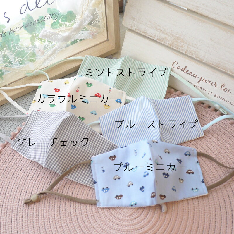 子供 布マスク 洗濯出来る 日本製 キッズマスク【クールカラーコットンと吸汗速乾メッシュor抗菌・抗ウイルス加工クレンゼガーゼ】1/2/3/4/5/6歳 ベビーマスク 立体 車 ブルー 男の子 生地 カラー 不織布フィルター 幼稚園 子ども 保育園 ネット 通気性 コットン 洗える 赤ちゃんからこどもまで男の子柄生地の布マスク。