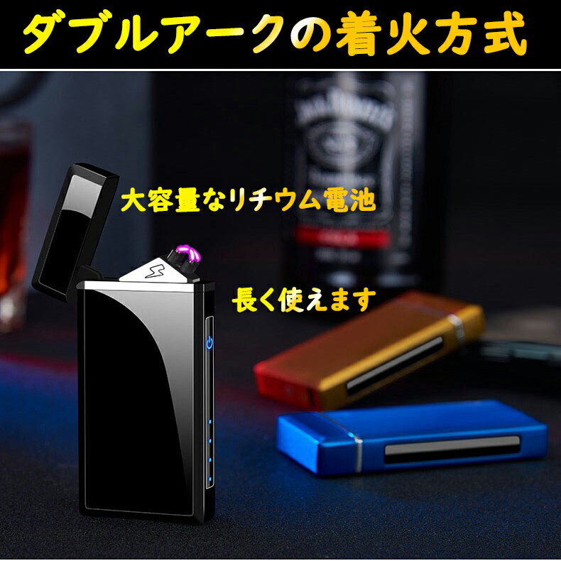 ライター シガレットライター 電子ライター USB充電 ミニ 防風 無炎 小型 電量表示 安全ロック 軽量 携帯便利 ダブルアークライター メンズ レディース おしゃれ キャンプ BBQ ハイキング アウトドア用