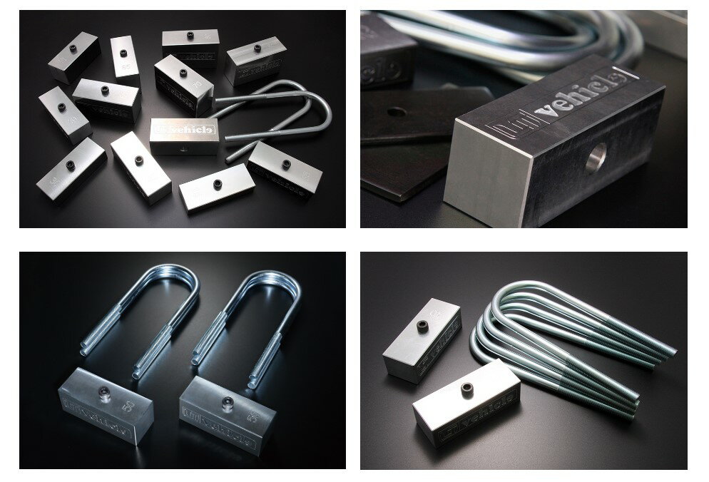 ブロックは5mm単位で計12種類(75mmは角度付)、Uボルトはダウン量に応じて3種類を用意。