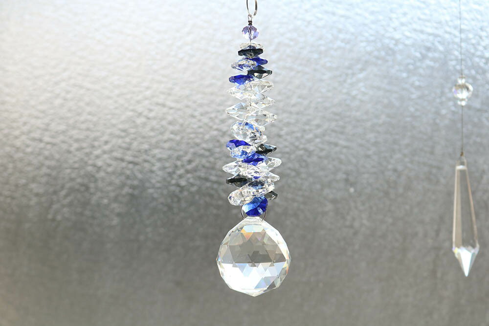 存在感のある40mm Ball 40mmサンキャッチャーと ブラック、ブルー、大小様々なクリアのパーツを幾層にも重ねたクリスタルタワーシリーズです。